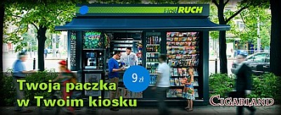 Ponadto od dzisiaj w cigarland.pl dostępna jest nowa forma dostawy - "Paczka w RUCHu". Można zamówić cygara i odebrać w pobliskim kiosku RUCHu. Pierwsze zamówienia w takiej formie dostawy zostaną dodatkowo nagrodzone gratisami!