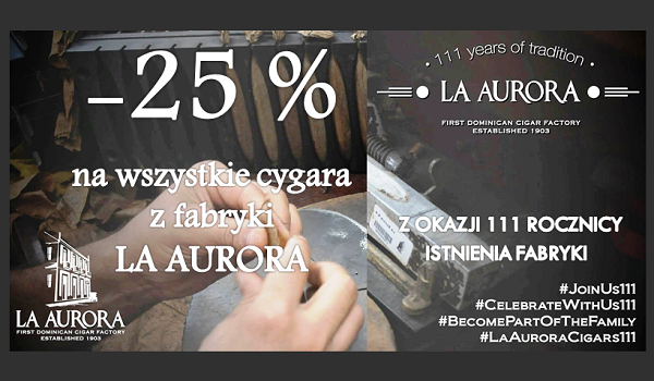 La Aurora istnieje od 1903 roku, czyli w tym roku obchodzi "okrągłe" 111 urodziny. Z tej okazji jeden z naszych forumowych partnerów - cigarsworld.pl - przygotował wspaniałą promocję na cygara tej marki.